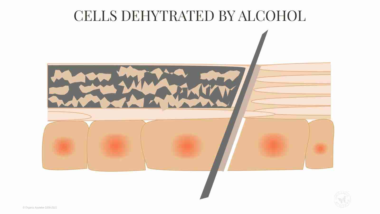 Alcohol dehydrates the skin and chemicals interfere with cellular function.